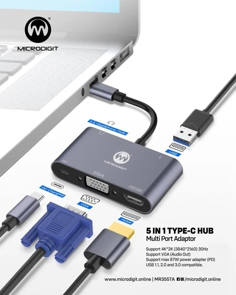 منفذ : TYPE-C الى مدخل HDMI-VGA-PD-USB-AUX